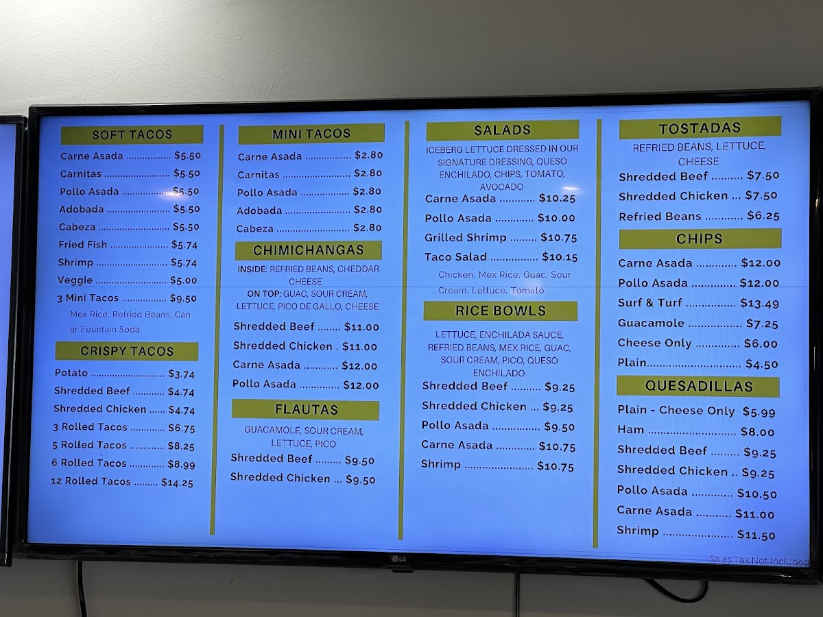 The shop also offers Quesadillas with fillings such as Shredded Beef, Pollo Asada, and Shredded Chicken. For lighter fare, the Taco Salad and Rice Bowls, available with choices like Carne Asada and Shrimp, provide a fresh and flavorful option.